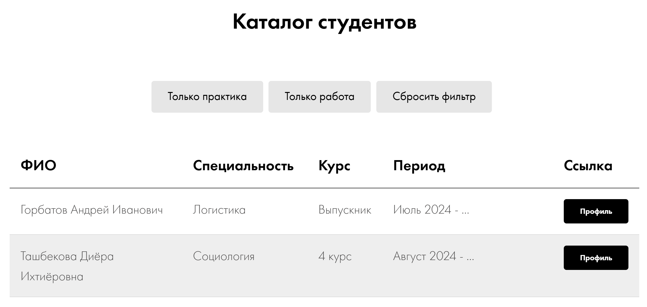 Ташбекова Диёра Ихтиёровна;Социология;4 курс;Август 2024 - ... ; Профиль button=http://guu-alumni.tilda.ws/graduate?filters698759681